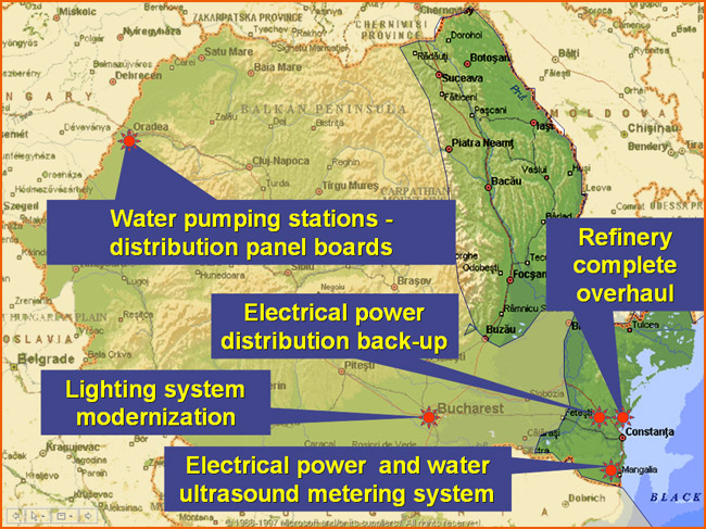 Thus, we executed classic projects such as the electrical lighting installations in industrial buildings, and technologic lighting (including in explosion proof areas). In the same time we have realized automation and programmed logical control projects with digital equipments for our most important customers. The design department assured the design and the implementation into existing electrical system. Remote control and metering monitoring systems, automations and controls in 6KV and 0.4KV switchgears, are a few examples of the projects that prove our company’s capacity and professionalism.